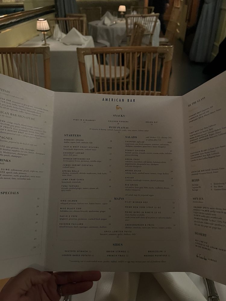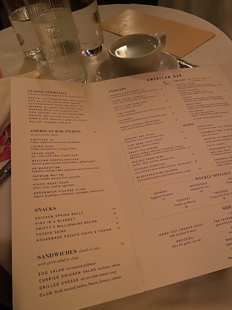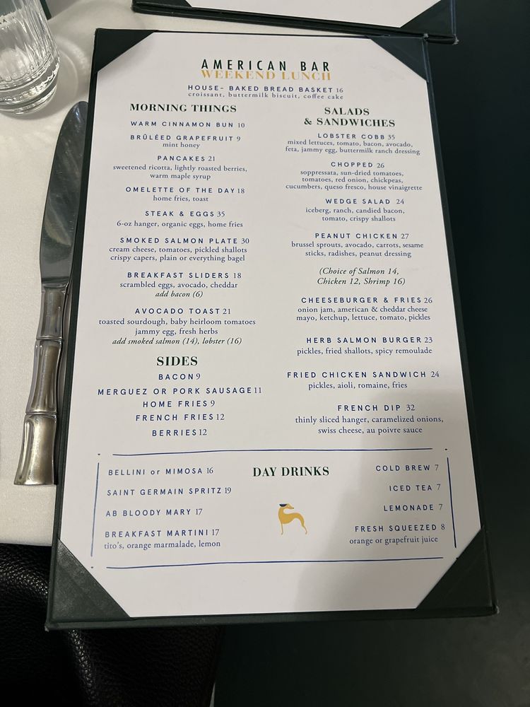 Overall, American Bar combines comfort food with sophistication, making it a must-visit spot for those seeking a memorable dining experience in the heart of New York City.